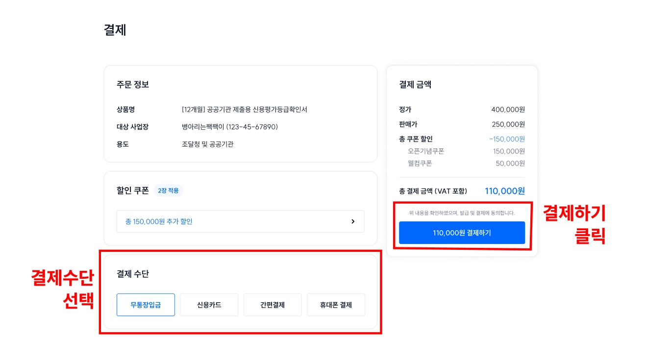 8. 원하는 결제수단을 선택한 뒤 결제하기 버튼을 클릭하여 결제를 진행해주세요.