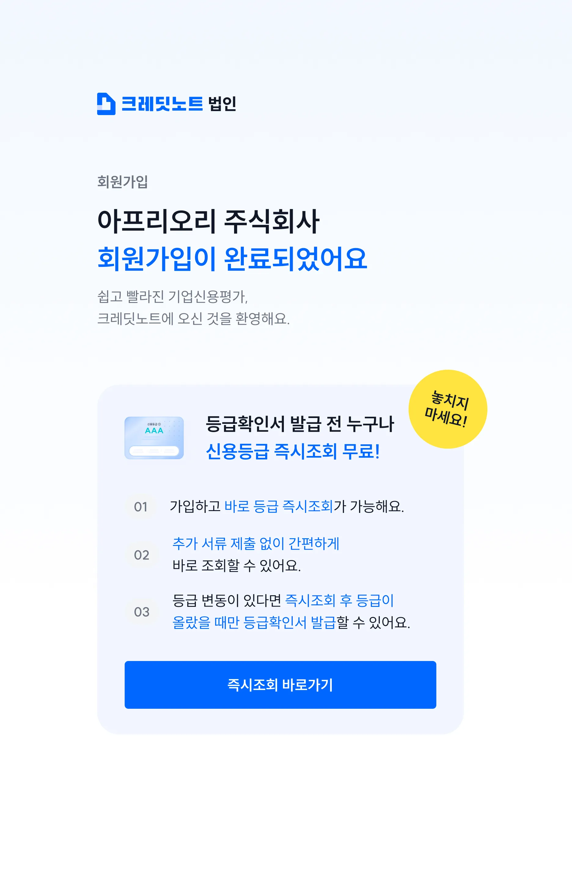 법인사업자도 0원에 즉시조회가 가능해요.